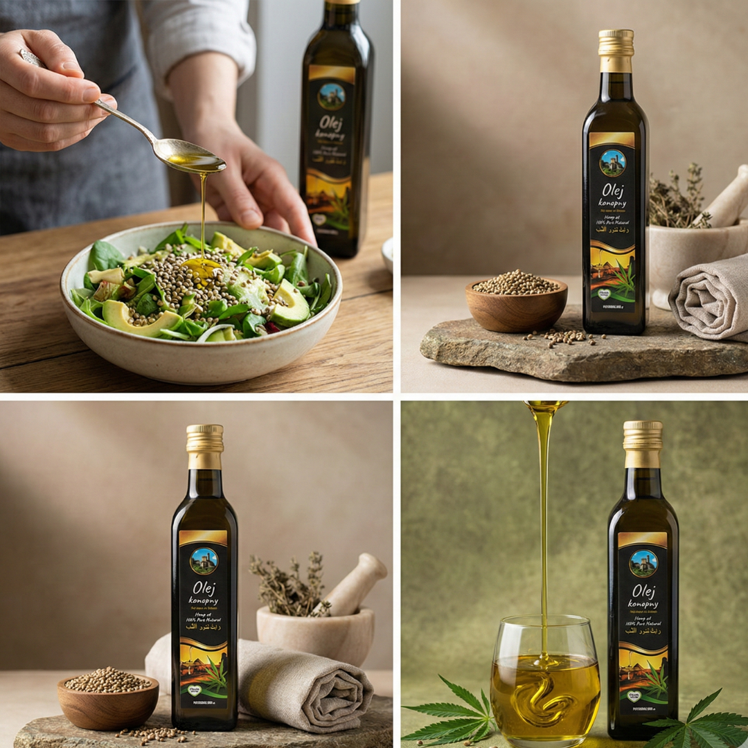 Szukasz naturalnego superfood lub ratunku dla problematycznej cery? Nasz Olej Konopny w butelce 100 ml to esencja zdrowia w kompaktowej formie. Tłoczymy go z polskich nasion konopi siewnej, uzyskując produkt o głębokim, zielonym kolorze i wyrazistym, orzechowym smaku. To idealna pojemność, by przetestować jego walory smakowe w kuchni lub wykorzystać go jako naturalne serum w łazience.